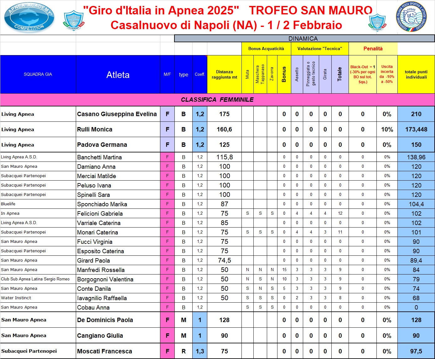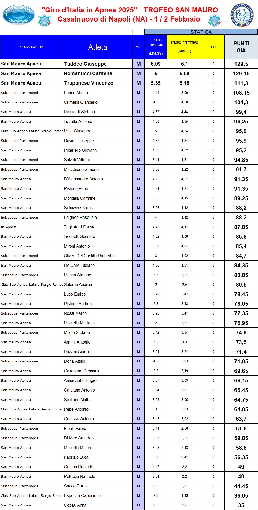 Da Gennaio 2025 il Giro d'Italia in Apnea (GIA) si allinea al Regolamento Federale in vigore per quanto riguarda tutto il protocollo di gara per tutte le discipline dell'apnea.